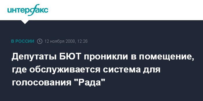 Москва. 12 ноября. INTERFAX.RU - Депутаты фракции БЮТ проникли в помещение, где находятся сотрудники, обслуживающие систему для голосования "Рада".