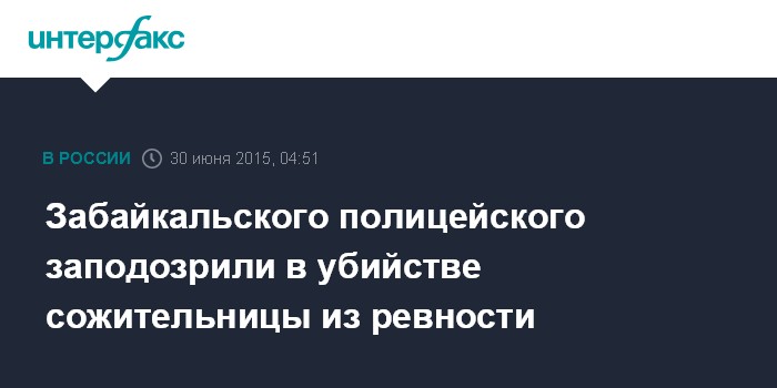 Москва. 30 июня. INTERFAX.RU - В Забайкальском крае полицейские разыскивают своего коллегу, который подозревается в убийстве сожительницы на почве ревности, сообщает пресс-служба краевого УМВД.