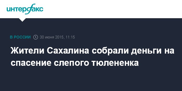 Москва. 30 июня. INTERFAX.RU - Слепого детеныша ларги по кличке Счастливчик, найденного в начале мая на берегу Анивского залива, 14 июля отправят из Южно-Сахалинска в Анапу, где он обретет новый дом в местном океанариуме "До-До".