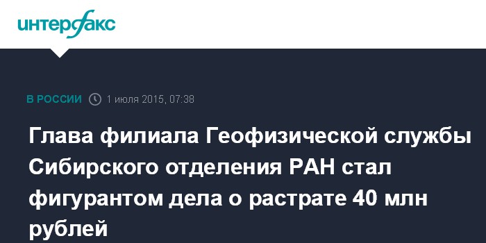 Глава филиала Геофизической службы Сибирского отделения РАН стал фигурантом дела о растрате 40 млн рублей