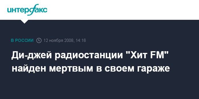 Ди-джей радиостанции "Хит FM" найден мертвым в своем гараже