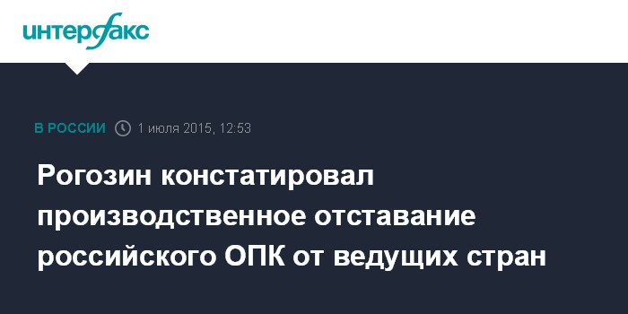 Москва. 1 июля. INTERFAX.RU - Российская "оборонка" пока серьезно отстает от производственных показателей ведущих стран в этой сфере, заявил вице-премьер РФ Дмитрий Рогозин.