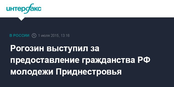 "Надеюсь, скоро мы обратимся к Государственной думе по вопросу о том, какие нужны изменения в закон о гражданстве с тем, чтобы жители Приднестровья, родившиеся после 1991 года, также могли рассчитывать на российское гражданство", - заявил Рогозин на "правительственном часе" в Госдуме.