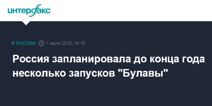 Москва. 1 июля. INTERFAX.RU - До конца года запланировано проведение нескольких пусков новой стратегической ракеты "Булава", сообщил "Интерфаксу" источник в Главном штабе ВМФ России.