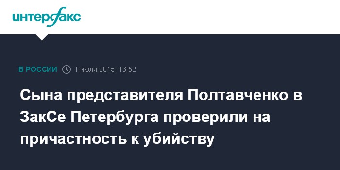 Сына представителя Полтавченко в ЗакСе Петербурга проверили на причастность к убийству