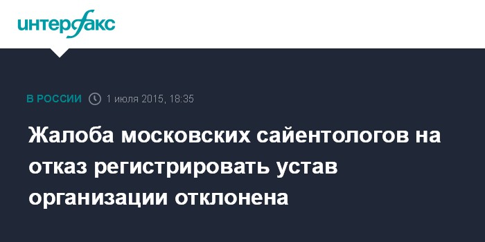 Жалоба московских сайентологов на отказ регистрировать устав организации отклонена