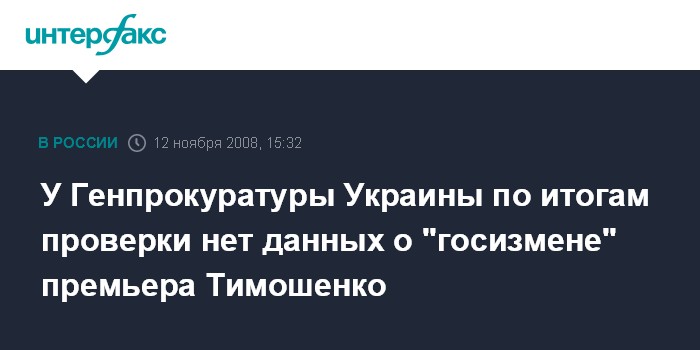 У Генпрокуратуры Украины по итогам проверки нет данных о "госизмене" премьера Тимошенко