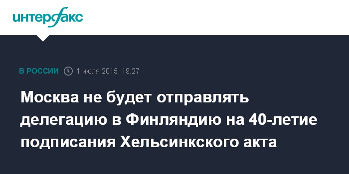 Москва не будет отправлять делегацию в Финляндию на 40-летие подписания Хельсинкского акта