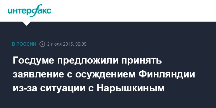 Госдуме предложили принять заявление с осуждением Финляндии из-за ситуации с Нарышкиным