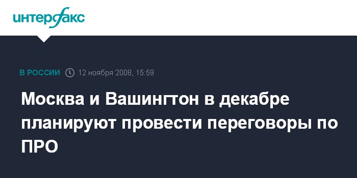 Москва. 12 ноября. INTERFAX.RU - Следующий раунд российско-американских переговоров по вопросам стратегической безопасности и противоракетной обороны намечен на декабрь.