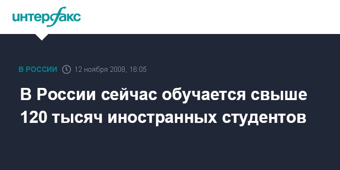 "Обучение на территории России иностранных граждан является одной из основных статей российского экспорта образовательных услуг. В настоящее время в РФ обучается свыше 120 тыс. иностранных граждан как на коммерческой основе, так и за счет федерального бюджета", - сказал Ничков на заседании коллегии Минобрнауки в среду. По его словам, в более чем 650 российских вузах обучаются иностранные граждане из 150 стран мира, однако 75% из них - это студенты из СНГ.
