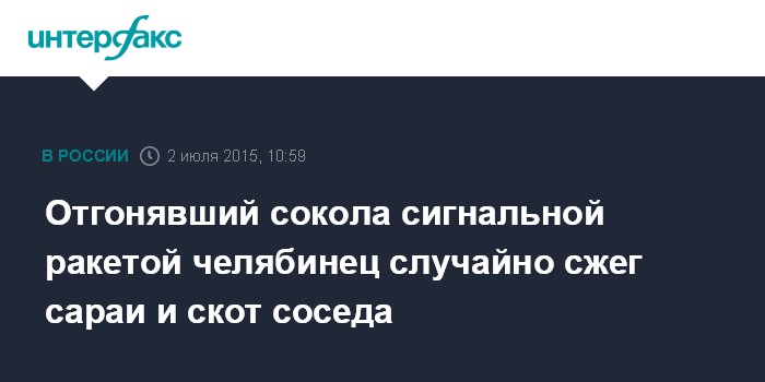 Отгонявший сокола сигнальной ракетой челябинец случайно сжег сараи и скот соседа