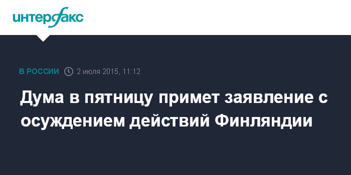 Дума в пятницу примет заявление с осуждением действий Финляндии