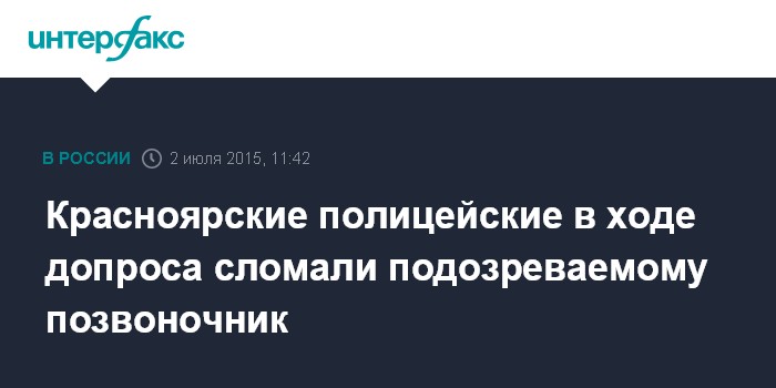 Красноярские полицейские в ходе допроса сломали подозреваемому позвоночник