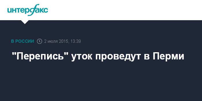 Москва. 2 июля. INTERFAX.RU - Департамент экологии и природопользования Перми обратился к горожанам с просьбой поучаствовать в "переписи" уток, обитающих на местных водоемах.