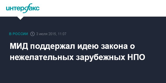 Москва. 3 июля. INTERFAX.RU - В МИД РФ считают правильным принять закон о нежелательных зарубежных неправительственных организациях.