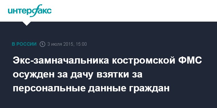 Экс-замначальника костромской ФМС осужден за дачу взятки за персональные данные граждан
