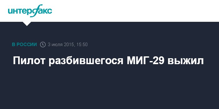 Москва. 3 июля. INTERFAX.RU - Летчик разбившегося в районе аэродрома Кущевская Краснодарского края самолета МИГ-29 жив, на земле в результате аварии разрушений нет, информирует Минобороны РФ.