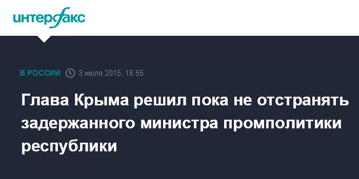 Глава Крыма решил пока не отстранять задержанного министра промполитики республики