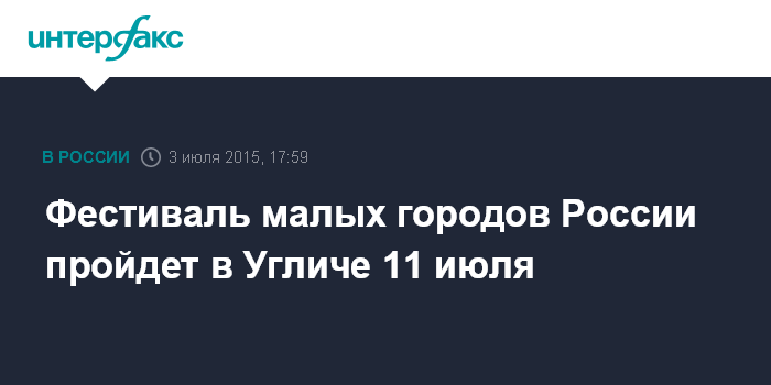Москва. 3 июля. INTERFAX.RU - Первый Фестиваль малых городов России состоится в Угличе (Ярославская область) 11 июля 2015 года, сообщается на сайте Ассоциации малых туристских городов (АМТГ).