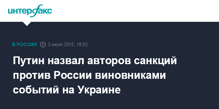 Москва. 3 июля. INTERFAX.RU - Виновниками событий на юго-востоке Украины являются те, кто ввел санкции в отношении России, заявил президент РФ Владимир Путин.