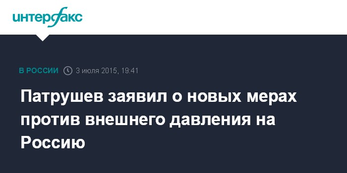 Москва. 3 июля. INTERFAX.RU - По итогам заседания Совбеза решено выработать дополнительные меры для противостояния внешнему давлению на Россию, заявил секретарь Совбеза Николай Патрушев.