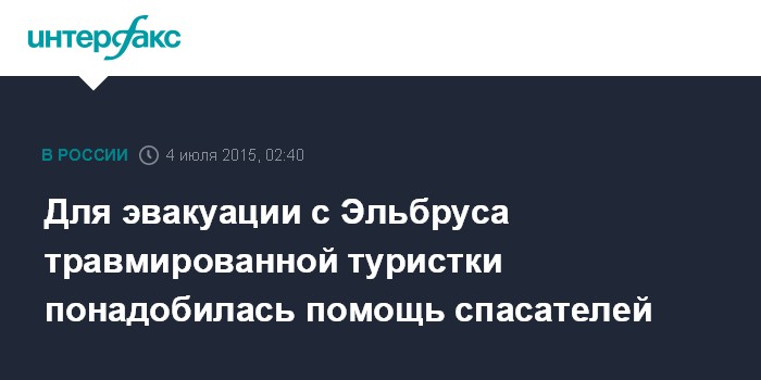 Москва. 4 июля. INTERFAX.RU - Спасатели высокогорного поисково-спасательного отряда начали транспортировку туристки из Москвы, получившую травму на Эльбрусе на высоте 3 тысячи метров, сообщило ГУ МЧС по Кабардино-Балкарии.