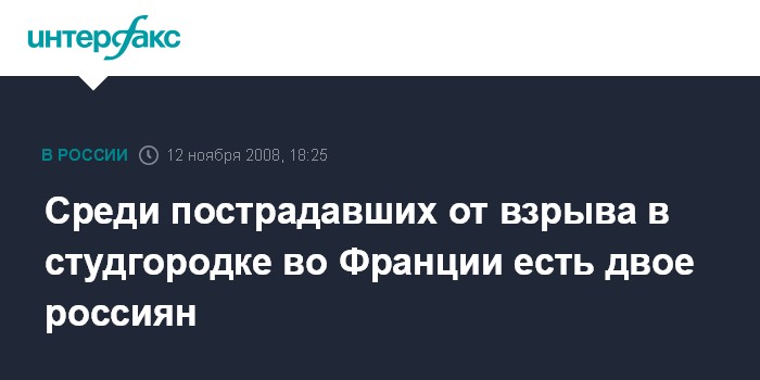 Москва. 12 ноября. INTERFAX.RU - Среди пострадавших в результате взрыва в студенческом общежитии французского города Монпелье есть "граждане России и стран Восточной Европы", заявил в среду представитель местной прокуратуры.
