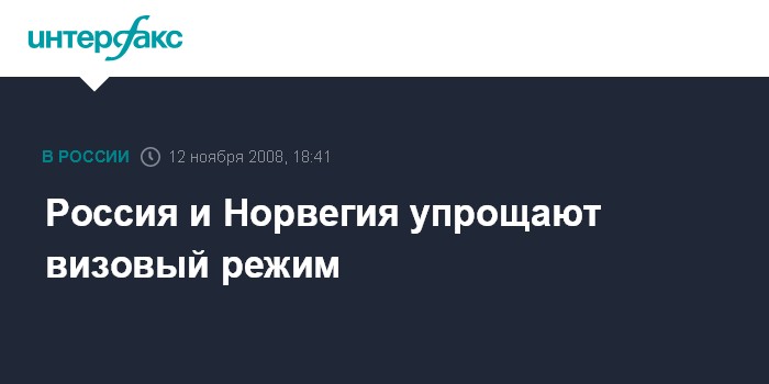 Москва. 12 ноября. INTERFAX.RU - Соглашения об упрощении визового режима между Россией и Норвегией, а также соглашение о реадмиссии, вступают в силу 1 декабря 2008 г., сообщает МИД России.