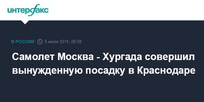 Москва. 5 июля. INTERFAX.RU - В аэропорту Краснодара совершил незапланированную посадку по техническим причинам пассажирский самолет, следовавший из Москвы в Хургаду, сообщили агентству "Интерфакс" в экстренных службах региона.