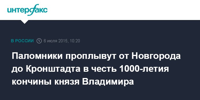 Москва. 6 июля. INTERFAX.RU - Водный крестный ход по маршруту Великий Новгород - Кронштадт посвятят 1000-летию со дня преставления святого равноапостольного князя Владимира.
