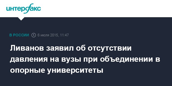 Москва. 6 июля. INTERFAX.RU - Объединение вузов в опорные университеты будет исключительно добровольным, заявил глава Минобрнауки РФ Дмитрий Ливанов.