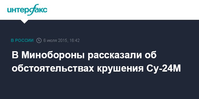 В Минобороны рассказали об обстоятельствах крушения Су-24М