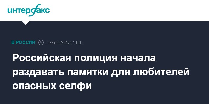 В этой связи МВД России подготовило памятки для любителей селфи, которые сотрудники полиции будут раздавать на публичных мероприятиях, школьники получат их на уроках безопасности и на других мероприятиях.