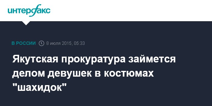 Москва. 8 июля. INTERFAX.RU - Прокуратура Якутии включилась в процесс выяснения обстоятельств появления в соцсетях фото двух местных жительниц у здания Дома правительства республики в одежде смертниц с муляжом бомбы в руках.