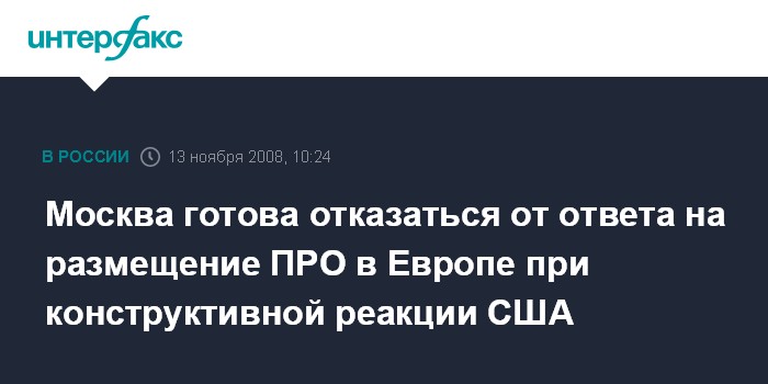 Москва готова отказаться от ответа на размещение ПРО в Европе при конструктивной реакции США