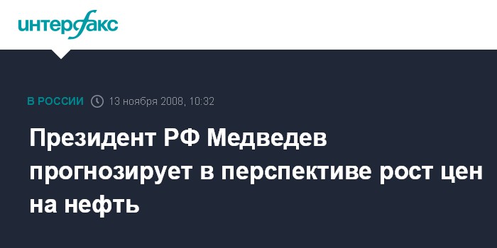 Президент РФ Медведев прогнозирует в перспективе рост цен на нефть