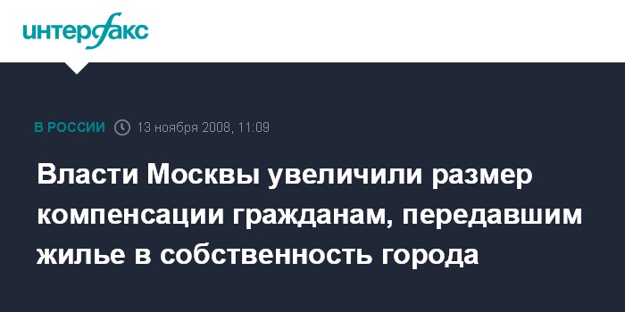 Власти Москвы увеличили размер компенсации гражданам, передавшим жилье в собственность города