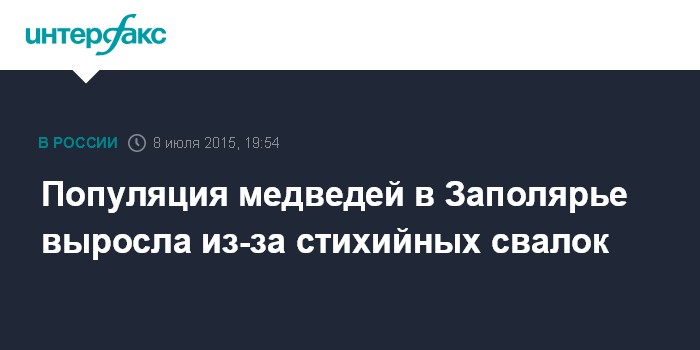 Москва. 8 июля. INTERFAX.RU - В Заполярье растет популяция бурого медведя, в поисках ареала обитания хищники все чаще бесстрашно выходят к людям, кормовую базу заменяют пищевые отходы на несанкционированных свалках, к таким выводам пришли в региональном Минприроды.