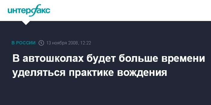 Москва. 13 ноября. INTERFAX.RU - Министерство образования и науки РФ не планирует изменять срок подготовки водителей в автошколах, но будет увеличено время, отводимое для практического обучения, сообщил замглавы Минобрнауки Исак Калина.