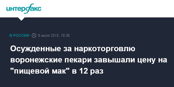 Москва. 9 июля. INTERFAX.RU - По данным УФСКН, владельцы кафе в Воронеже, осужденные за наркоторговлю, торговали маком по завышенной в несколько раз цене.