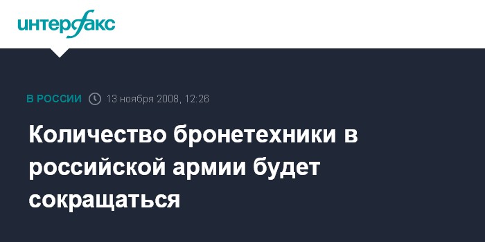 "В рамках реформы изменения претерпит как оргштатная структура, так и в количественном составе у нас немножко уменьшится (количество бронетехники, - "ИФ-АВН")", - сказал он, отвечая на вопрос, отразится ли на количественном составе военной техники сокращение Вооруженных сил и переход на новую структуру управления.