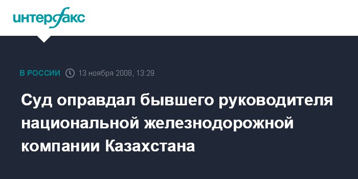 Астана. 13 ноября. INTERFAX.RU - Экс-руководитель национальной железнодорожной компании "Казахстан темир жолы" (КТЖ) Жаксыбек Кулекеев, обвинявшийся во взяточничестве, оправдан.