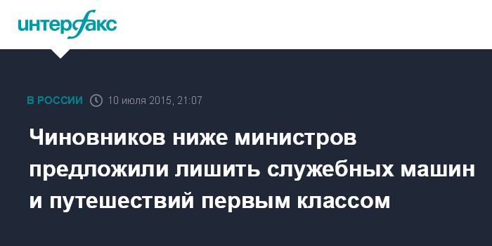 Чиновников ниже министров предложили лишить служебных машин и путешествий первым классом