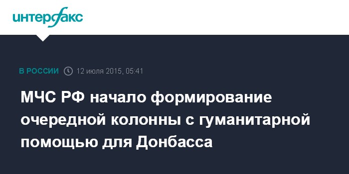 Москва. 12 июля. INTERFAX.RU - МЧС России приступило к формированию 32-й колонны с гуманитарной помощью для Донбасса, сообщили в пресс-службе МЧС.