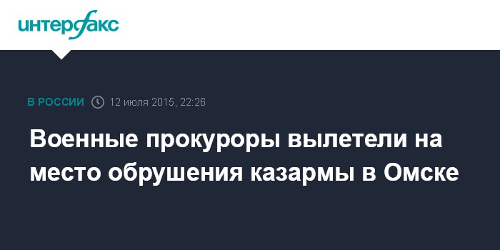 Москва. 12 июля. INTERFAX.RU - В связи с обрушением здания учебного центра в Омске на место происшествия вылетела группа сотрудников Главной военной прокуратуры, сообщили "Интерфаксу" в пресс-службе ГВП.
