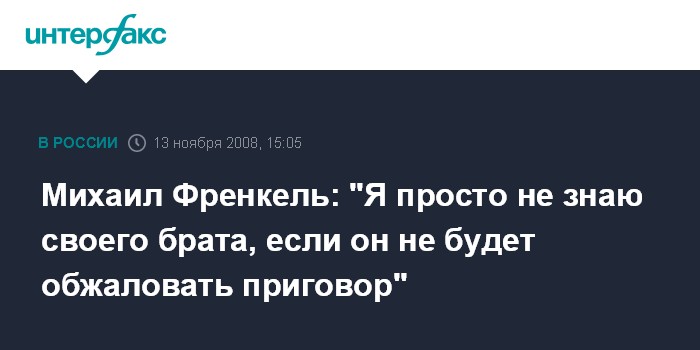 Михаил Френкель: "Я просто не знаю своего брата, если он не будет обжаловать приговор"
