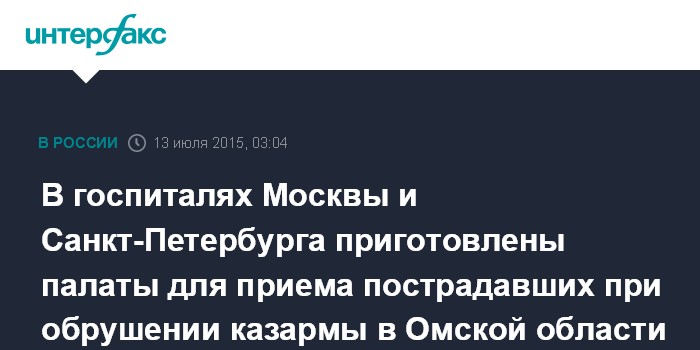 В госпиталях Москвы и Санкт-Петербурга приготовлены палаты для приема пострадавших при обрушении казармы в Омской области