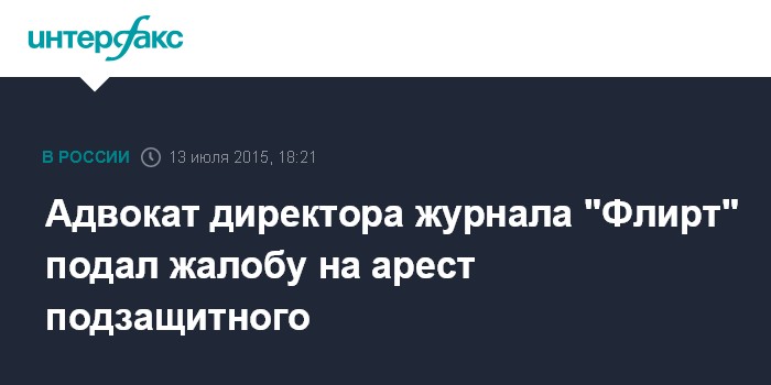 Адвокат директора журнала "Флирт" подал жалобу на арест подзащитного