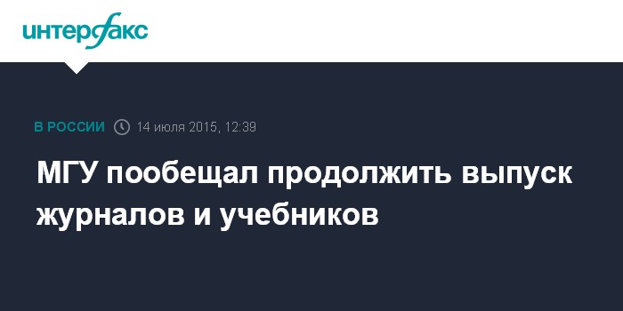 Москва. 14 июля. INTERFAX.RU - Решение о реогранизации издательства МГУ назрело давно, поскольку оно вынуждало учебное заведение покрывать его многомиллионные долги, заявляют в университете.